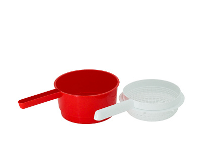 Предлагаем Вам сыродельницу, перфорированную полимерную двухэлементную (дуршлаг и ковш с ручками), для адыгейского сыра, ориентировочной массой примерно 200-300 г.